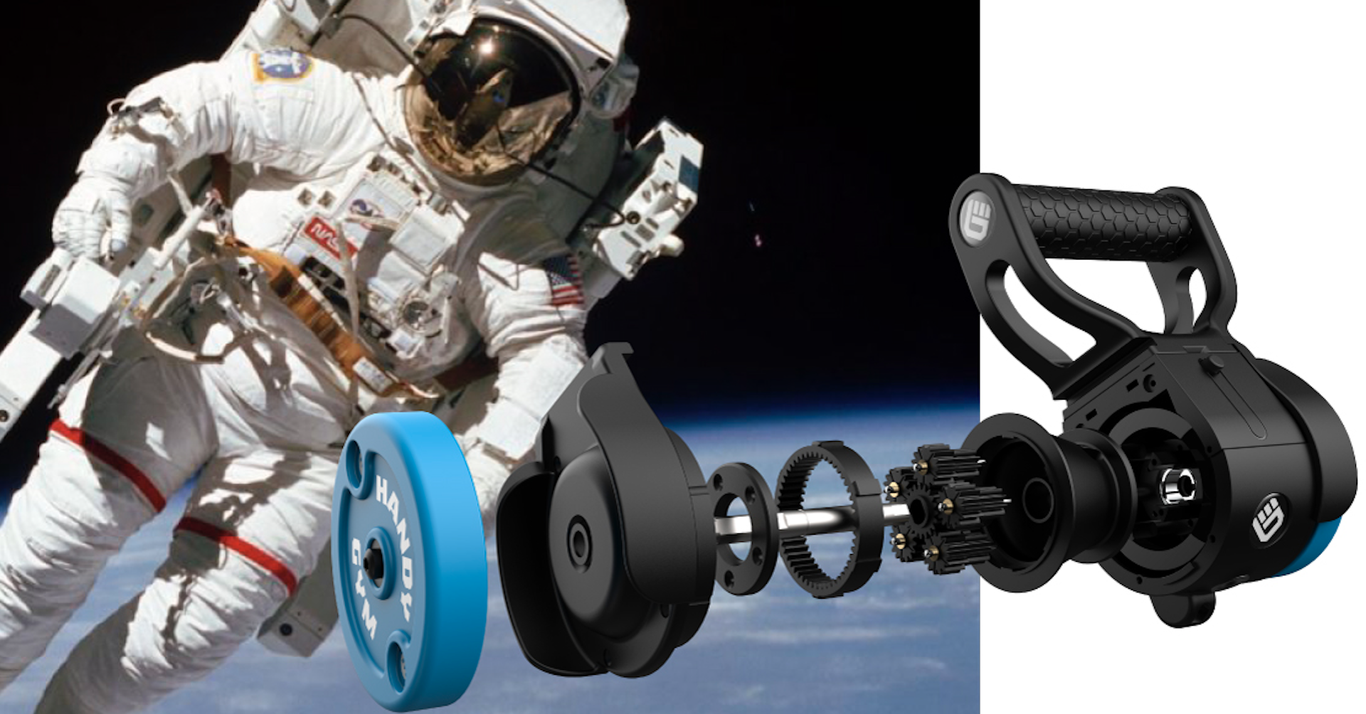 『Handy Gym』は宇宙飛行士が無重力の宇宙空間でも環境変化の影響を受けずに行える筋力トレーニングという要望を叶えるためにNASAによって開発された「慣性トレーニング」を利用したフィットネス用品です。