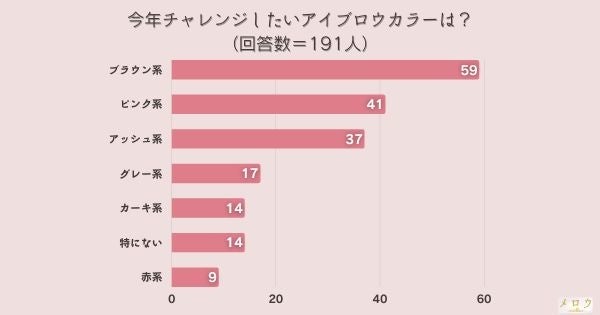 「今年チャレンジしたいアイブロウカラーは?」とアンケート調査した結果、1位は『ブラウン系』でした。