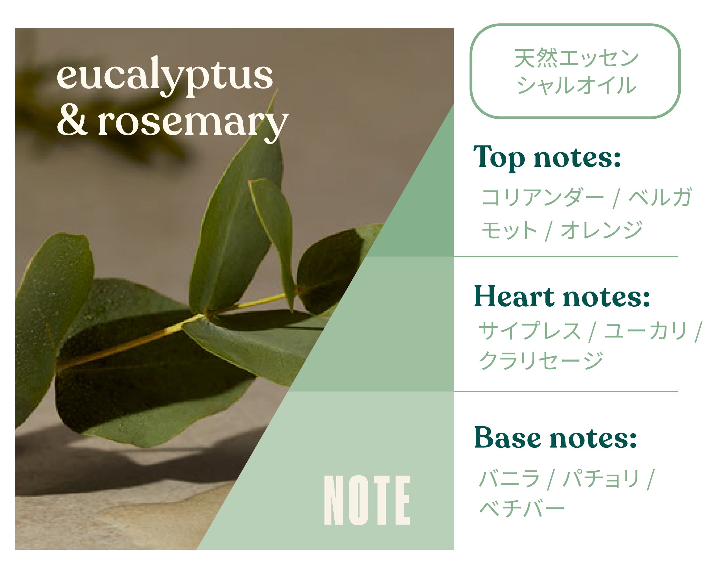 生きる上で欠かせない呼吸。深い呼吸は思考をクリアにしてくれるとも言います。栽培することで小さな農家の支援につながっている中国雲南省産のユーカリと、スペイン産のローズマリーの清涼感溢れる香りは、心と身体の調和を感じたい時におすすめです。