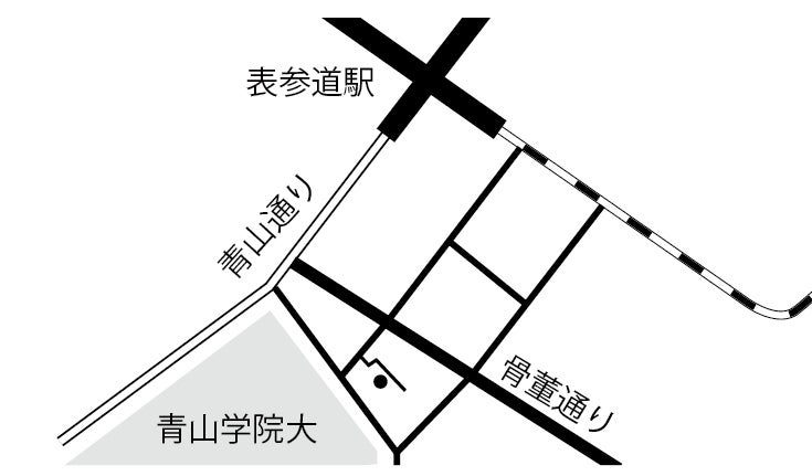 表参道駅 B1 出口から出て骨董通りを左折、一つ目の十字路で右に入ってすぐ左手の道を入っていくと右手に会場がございます。