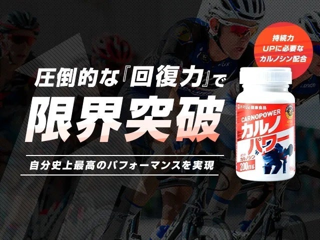 ”カルノパワー”とは、筋肉を構成するイミダゾールペプチドの一種で疲れ知らずのからだ作りをサポートする成分「カルノシン」が多く含まれる回復系サプリメントです。
