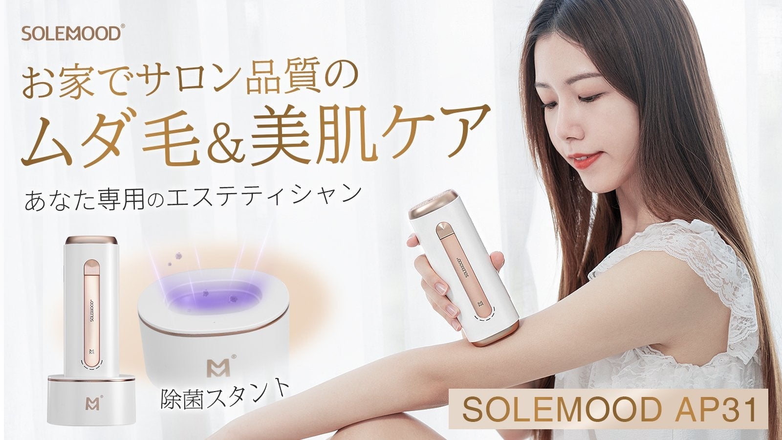 鑫三海株式会社(SINSANKAI CO., LTD.)が運営する、“驚きと感動のある世界水準の良品で、みなさまに豊かな暮らしをお届けする”AFU(アフー)ストアは、サロンに行かずに、自宅で本格かつ安全なムダ毛ケア&美肌ケアができる「SOLEMOOD AP31」の販売を応援購入サービスMakuake(マクアケ)で開始しました。多くのサロンで導入されている「IPL技術」を採用し、サロンに行かずに、自宅で本格かつ安全なムダ毛ケア&美肌ケアができます。さらに携帯に便利なコードレス&コンパクト設計なので、旅行や出張先でも気軽にムダ毛ケアが可能。除菌スタンド付きなので、いつでも清潔にお使いいただけます。