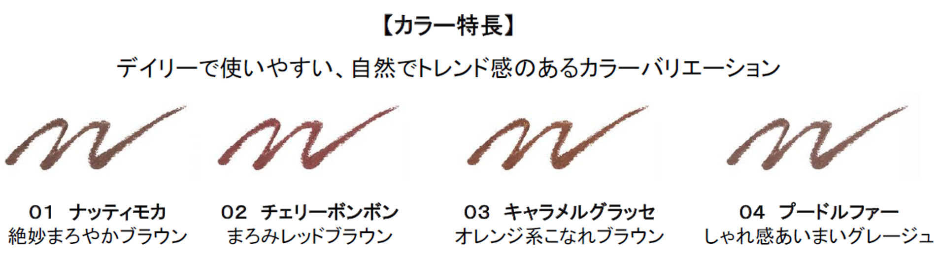 デイリーに使いやすいトレンド感のあるカラーラインアップで気分やシーンに合わせてお選びいただけます。