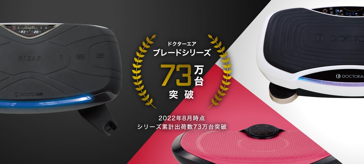 この度、2022年8月に『ドクターエア』の代表製品 “乗るだけトレーニング”で人気の振動マシン【ドクターエア ブレードシリーズ】の累計出荷台数が“73万台”を突破! 【ドクターエア ブレードシリーズ】は乗るだけで簡単にトレーニングができるだけでなく、自宅で行っているトレーニングの負荷を上げることでタイムパフォーマンスの向上も期待できるおうちフィットネスマシンです。