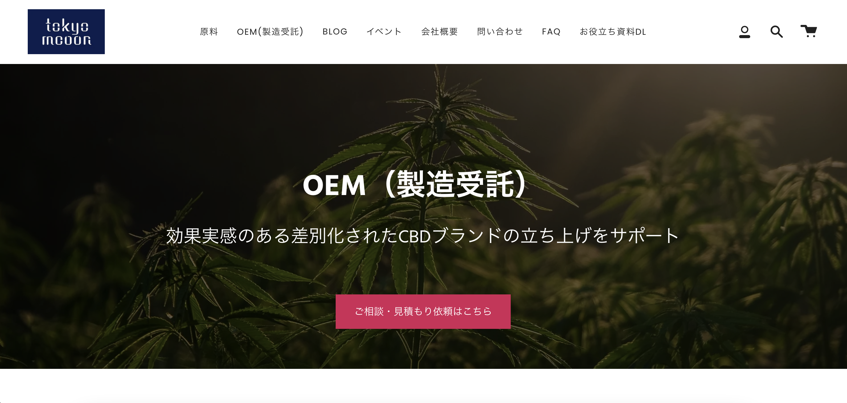 「tokyo mooon」は、厳選したCBD原料の輸入卸およびOEMによる製品製造、CBDメディアを用いた商品の販促サポート等、多方面でCBD事業者の成功を支援するサービスです。