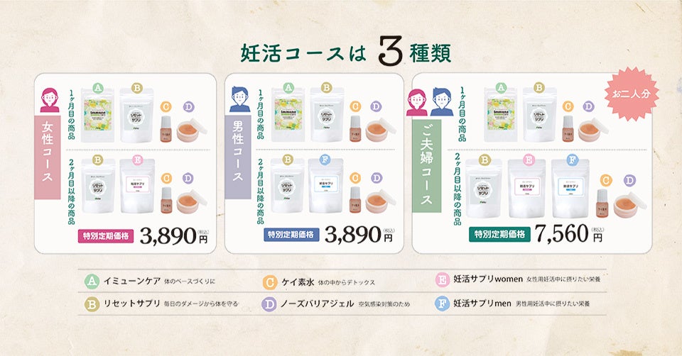 妊娠のための身体づくりをベースから整えていく「妊活サプリセットコース」誕生!