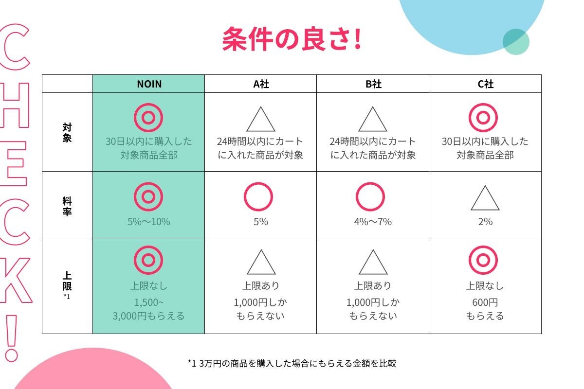 昨今NOINでは、いちユーザーの口コミがきっかけで他ユーザーが商品を購入するという循環が生まれておりました。発信者に対してもメリット提供し、この循環を更に強化するという目的のもと、パートナープログラムを開始いたしました。