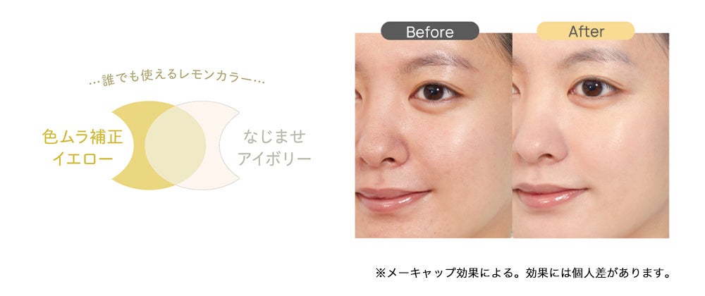 イエベや暗めの肌には似合わないと思われがちなトーンアップ下地ですが、“肌の色ムラを均一に補正※するイエロー”に、“自然になじんで肌を明るく見せるアイボリー”をプラスしたこだわりのレモンカラーが、“どんな肌にもしっかりなじんで、自然にトーンアップ※。
