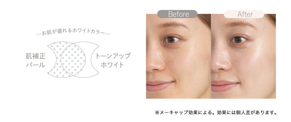 他の3カラーとは違い、肌をきれいに見せる“ツヤ感”に着目。スキンケア後のように肌がうるおってふっくらした状態に見せる“内側のツヤ感”と、光の反射で肌のアラをとばして、肌ノイズのない状態に見せる“外側のツヤ感”。2つのツヤ感にこだわったホワイトカラーで、肌にフィルターをかけたような仕上がりに※。