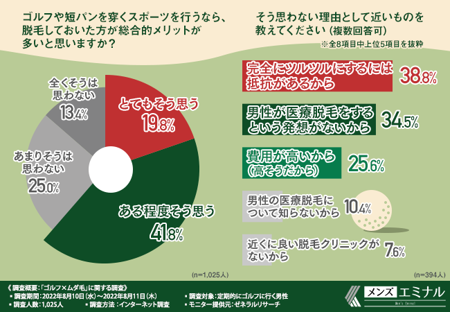 そこで今回、メンズ医療脱毛クリニックメンズエミナル』(https://mens-eminal.jp/lp/?refmedia=31073)は、定期的にゴルフに行く男性を対象に、「ゴルフ×ムダ毛」に関する調査を実施しました。