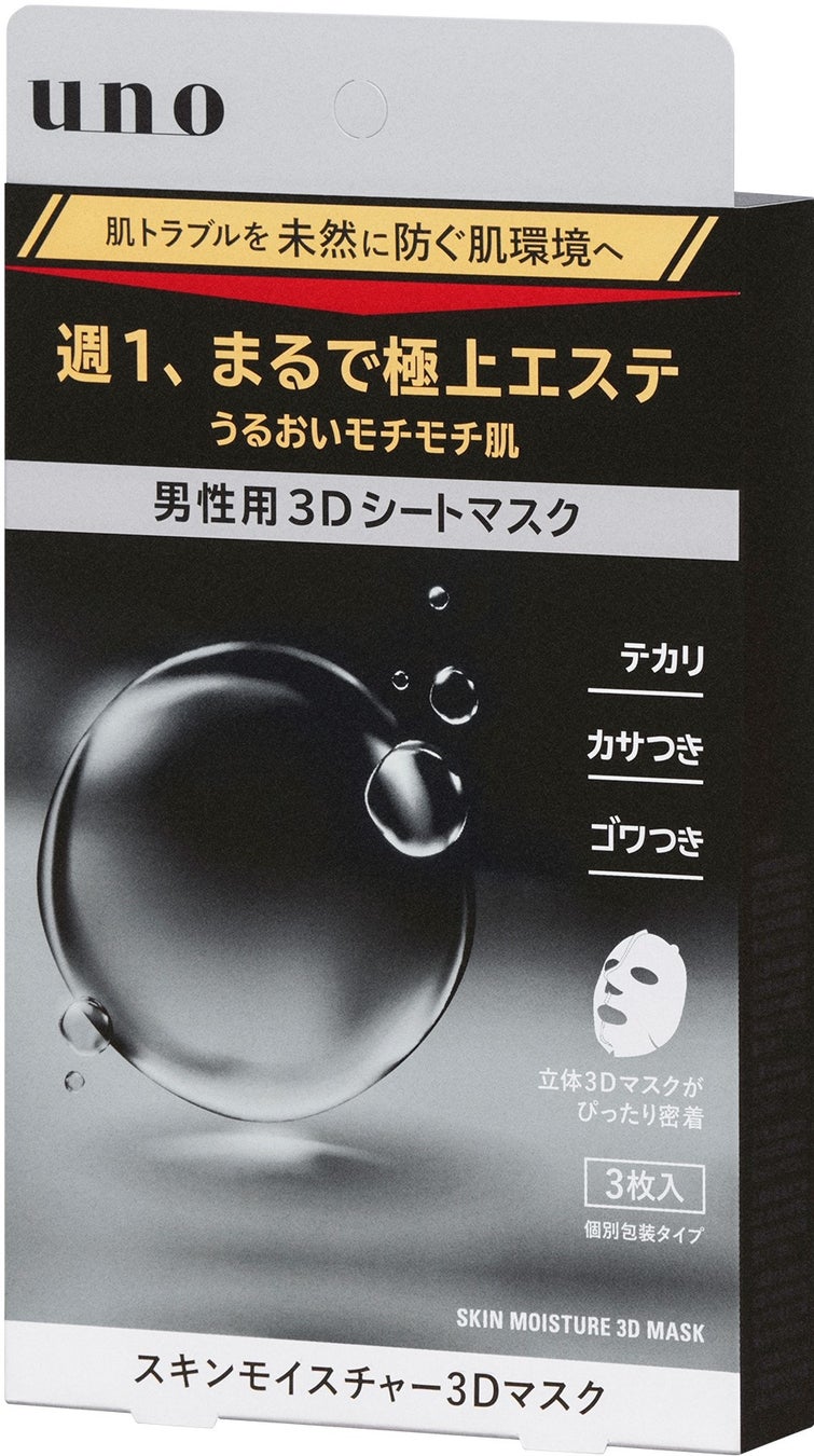 そこで、男性美容のエキスパートである「uno(ウーノ)」は、男性の肌やライフスタイルに寄り添った男性のためのシートマスク「ウーノ スキンモイスチャー3Dマスク」を9月上旬より新発売いたします。