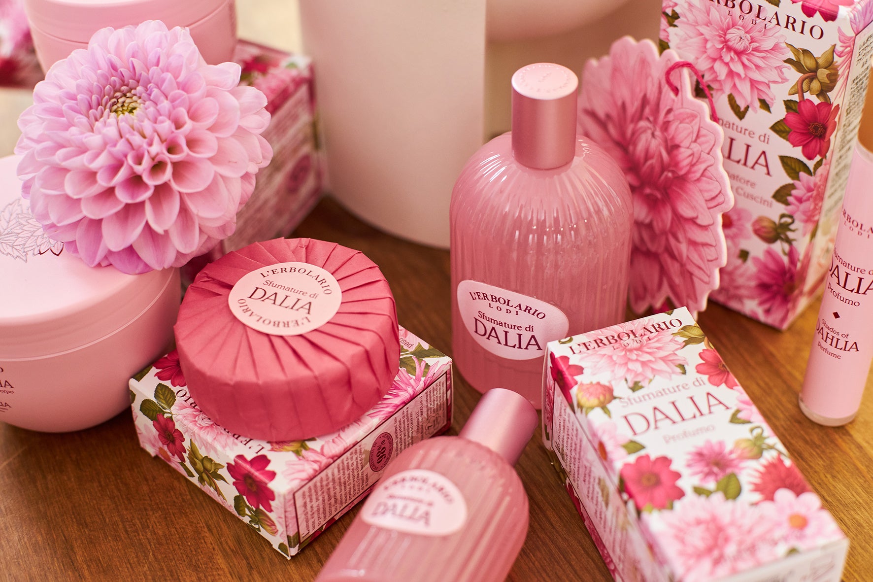 エキゾチックなダリアの香りを楽しめるボディケア&フレグランスのコレクション。ガーデンダリアから抽出したエキス(ダリア花エキス)と蒸留水(ダリア花水)がお肌を柔らかく整え、華やかな香りを漂わせます。シャワージェルやボディクリーム、パフュームなどの他、ルームディフューザーやリネン用スプレーなどのホームフレグランスまで全9種の製品が揃います。
