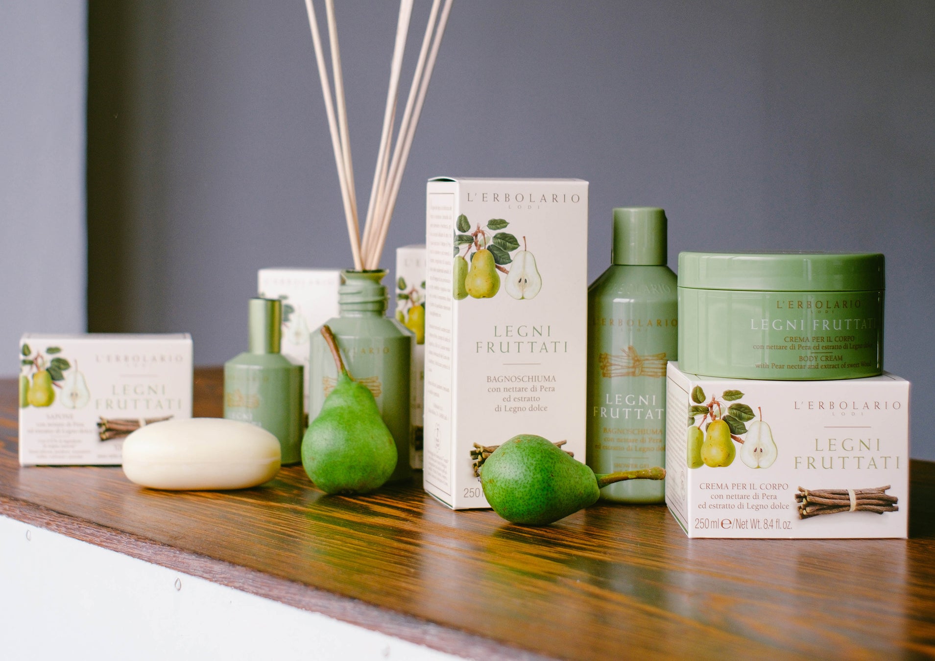 洋ナシの甘くフルーティーな香りとリコリスのウッディでかすかにピリッとする香りが融合した、甘すぎないフレッシュノートが楽しめるコレクション。洋ナシの果汁(セイヨウナシ果汁)や、リコリスの根から抽出されるエキス(カンゾウ根エキス)がお肌を整え、うるおいで満たします。シャワージェル、ボディクリーム、ソープ、パフューム、ルームディフューザーの全5種のラインナップです。