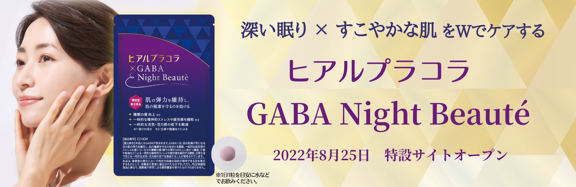株式会社ニッセン(本社:京都市南区、代表取締役社長:羽渕 淳)が販売する美容ブランド『ヒアルプラコラ』シリーズに、機能性関与成分「GABA」を配合した新商品『ヒアルプラコラGABA Night Beauté(ギャバナイトボーテ)』(機能性表示食品)が新たにラインナップに加わりました。商品の詳細は、8月25日(木)11時より「ニッセンオンライン」(https://www.nissen.co.jp/)の特設ページでご覧いただけます。
