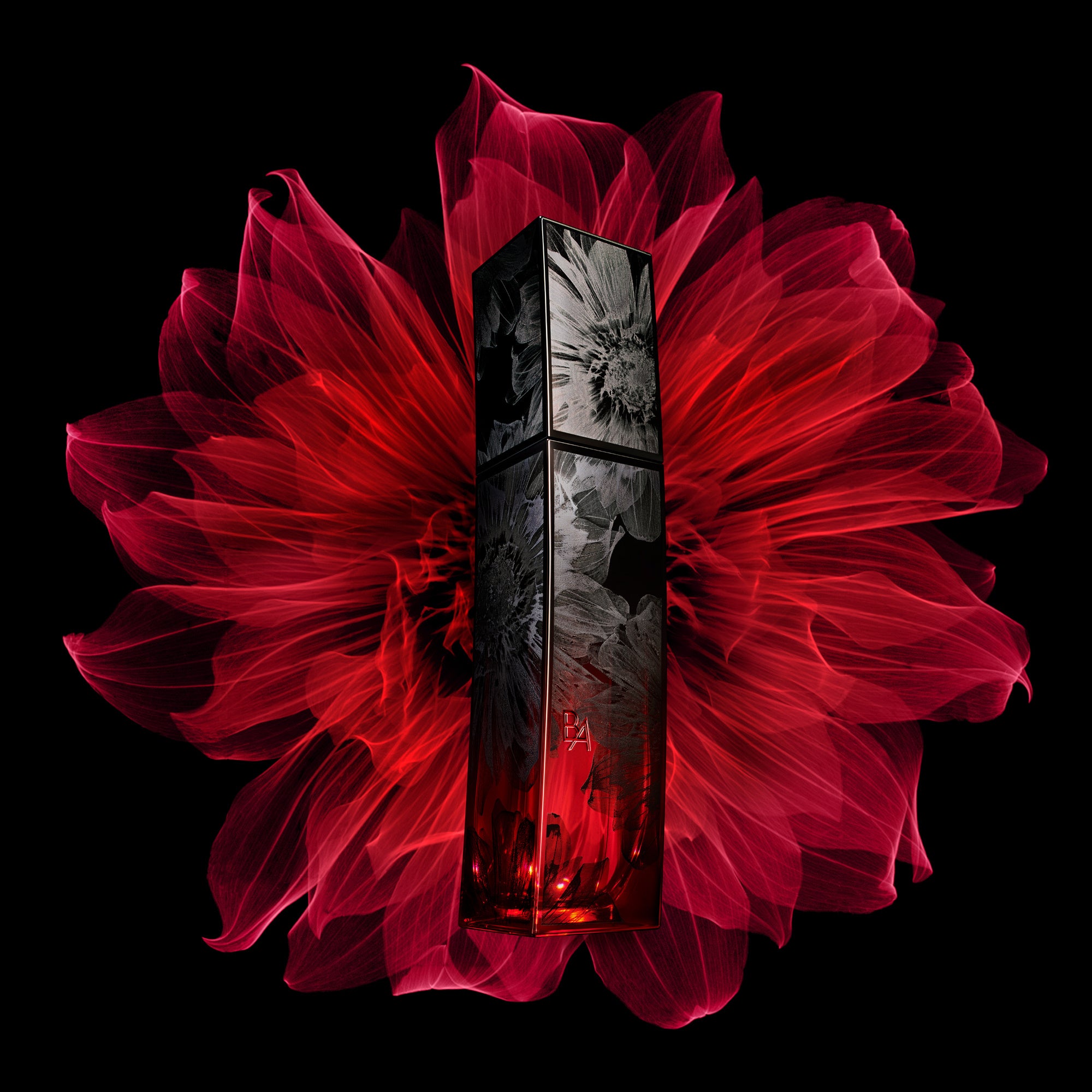 ◆シンボルであるダリアをあしらった限定デザイン「B.A ローション ダリア リミテッドエディション」を展示