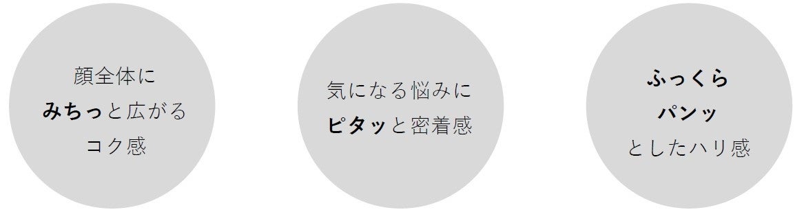 続けることで真価を発揮するお手入れだからこそ、従来通り、お顔全体に軽やかにのび広がるここちよさはそのままに。さらに、ここちよさと未来への期待感がより一層高まるように、気になるお悩みにピタッと密着し、ふっくらパンッとしたハリ感が感じられるステージへと、使いごこちがパワーアップしました。