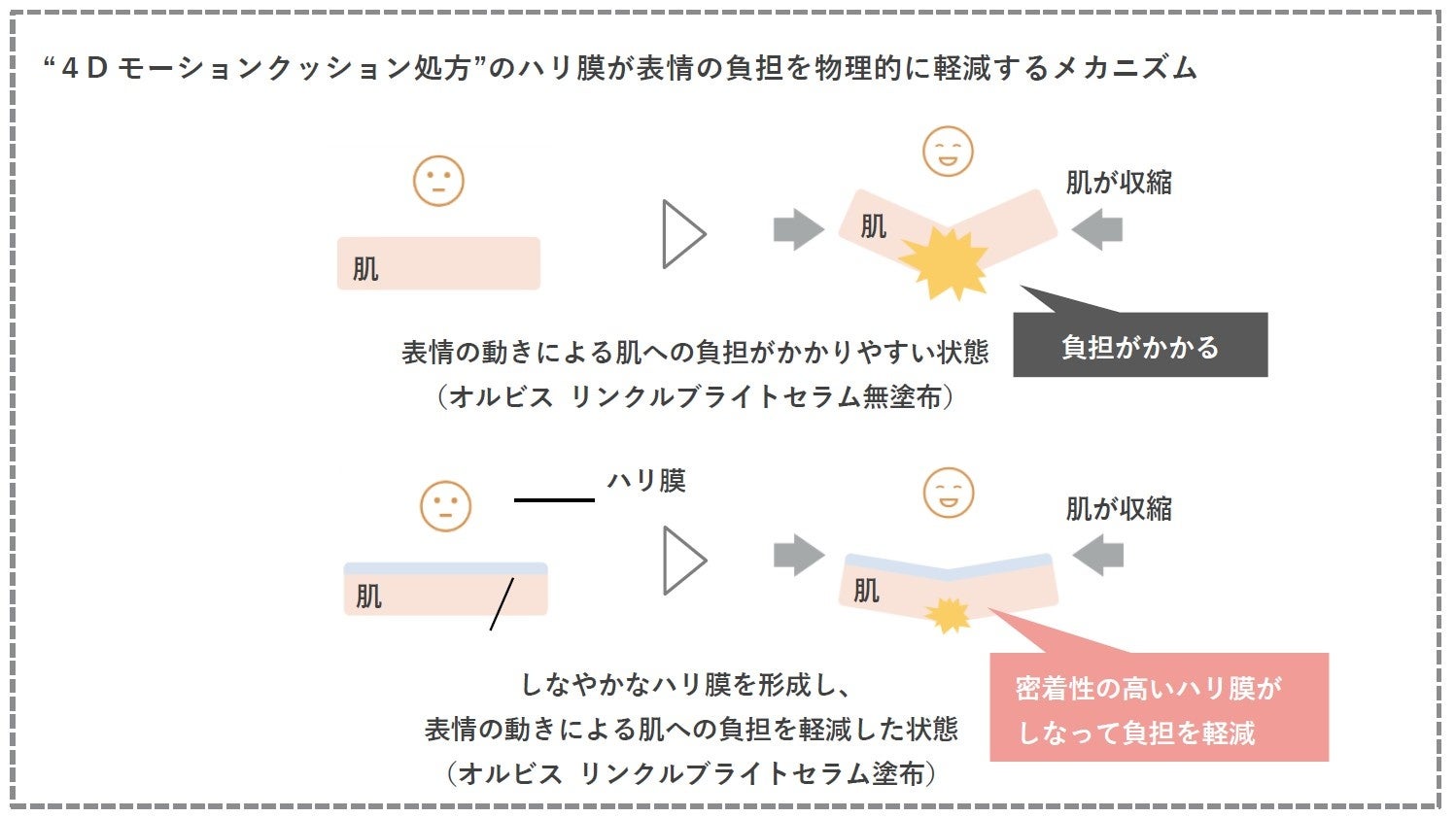 クッションのようなハリ膜を形成し、表情の動きにより肌にかかる負担を物理的に軽減する独自処方“4Dモーションクッション処方”を新採用。