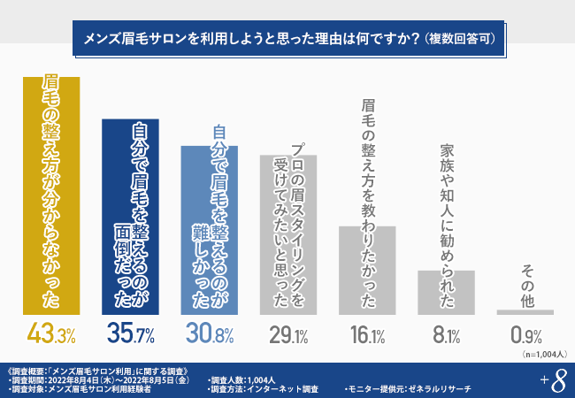 今回の調査で、多くの男性が「インターネットやSNS」を通じてメンズ眉毛サロンの存在を知り、「眉毛の整え方が分からない」ことを理由に利用していたことが分かりました。