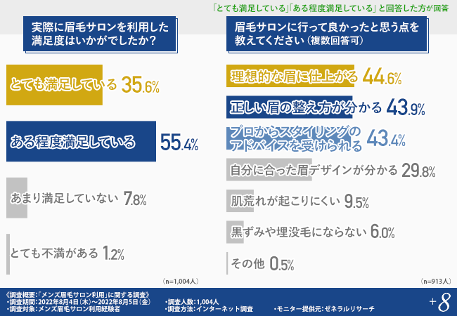 そこで今回、株式会社プラスエイト(https://www.plus8.bz/)は、メンズ眉毛サロン利用経験者を対象に、「メンズ眉毛サロン利用」に関する調査を実施しました。