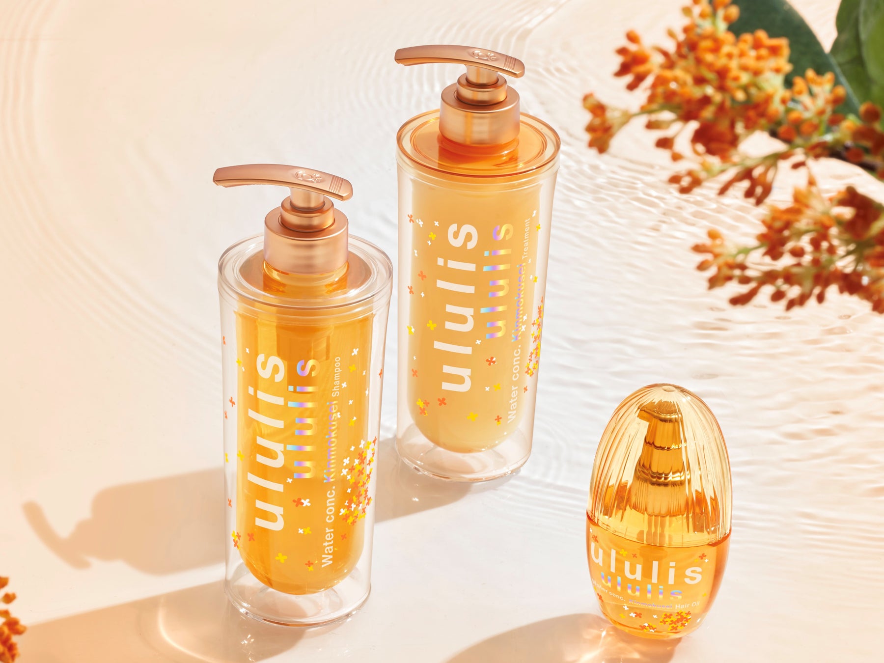 今回発売する『ululis Kinmokusei』は、人気の金木犀の香りを採用。金木犀のみずみずしく甘い香りが髪全体にふんわりと広がります。さらにパッケージも「ululis」特有の二重構造を活かし、愛らしい金木犀が一面に咲き誇る様子を重ね絵で表現しました。