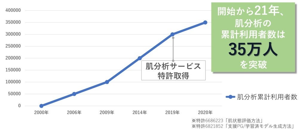 株式会社アイムでは、スキンケアブランド「ライスフォース」を購入いただいたお客様へのサービスとして、20年以上に渡り、「郵送」でお客様の肌を分析するサービスを提供してまいりました。現在では、肌分析サービスの累計利用者数は35万人を超え、サービスに関連した2つの特許を取得するに至っております。