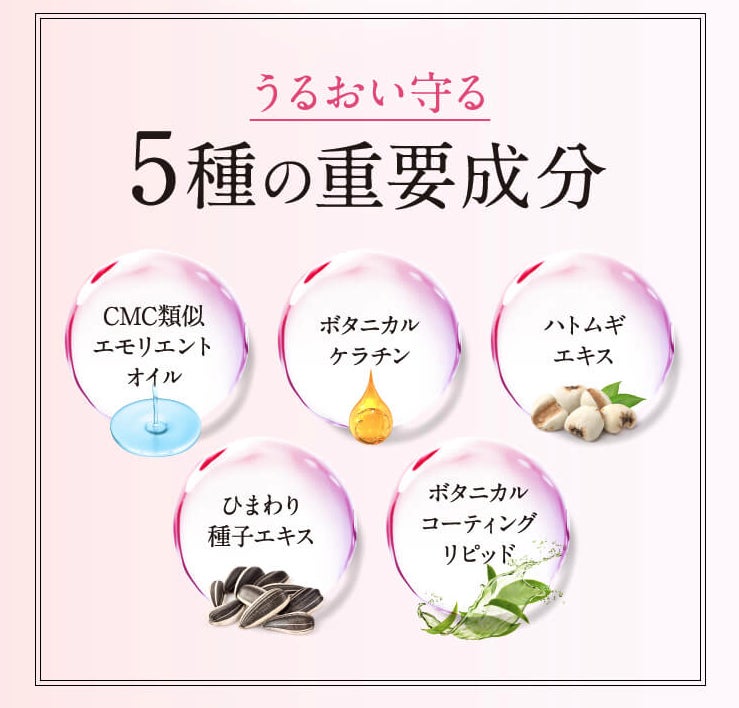 配合された保湿保護成分がうるおいベールを作り、ダメージから髪を守ります。