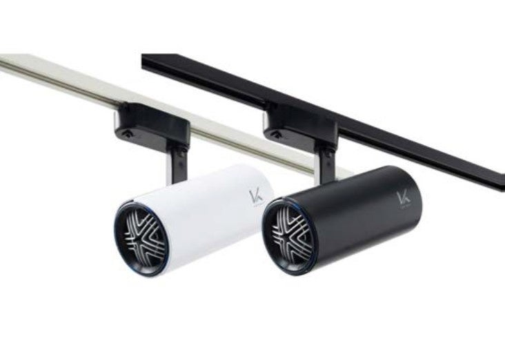 本特許の技術により、筒状の筐体内に、送風機、光触媒部材、さらには光触媒フィルターに照射するための光源を内蔵することができ、それによって、スマートで外観に調和しやすい除菌装置を開発することが可能となりました。例えば、スーパーマーケットやデパート、学校や病院等の施設において、本除菌装置は、設置場所を大きく取らずに、照明と同じ天井の配線ダクトに設置することができるため、施設の内装や雰囲気に違和感を与えることなく空気を除菌することが可能です。