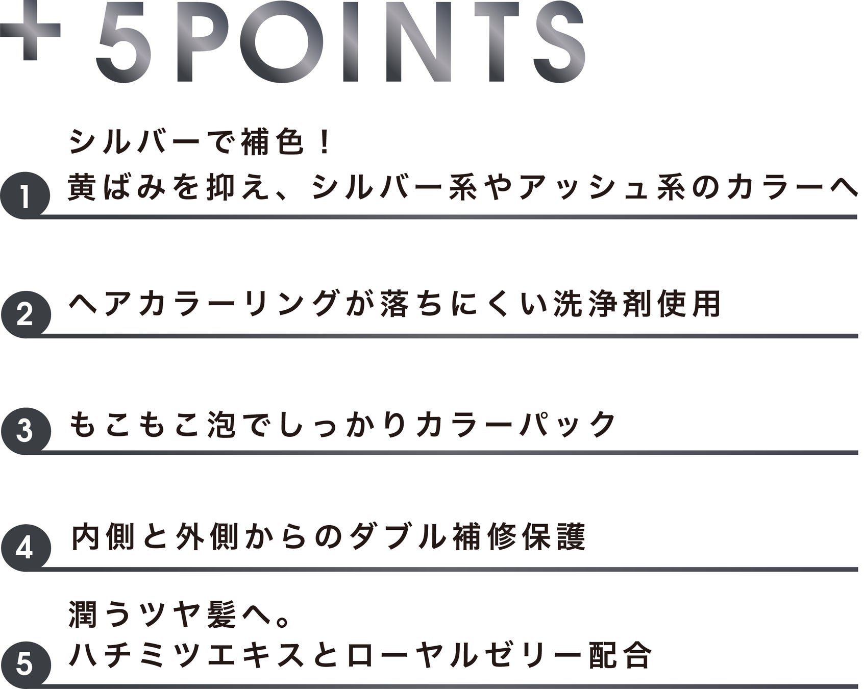 くすませニュアンスを作る寒色シルバーが、カラーシャンプー ・トリートメント共に新登場。シルバー系やアッシュ系のカラーリングを持続させます。