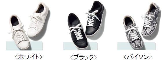 毎日おしゃれを楽しみながらボディメイクを目指してほしいとの思いから、スニーカーのデザインをTVや人気ファッション誌で活躍中のスタイリスト福田美和さんに監修を依頼。大人の洗練スタイルを叶えるシンプルシックなデザインで、<ホワイト><ブラック><パイソン>の3色を用意しました。
