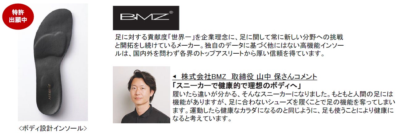 - 特許出願中の「ボディ設計インソール」内蔵!結果を出すために選ぶ“ボディメイクスニーカー”。