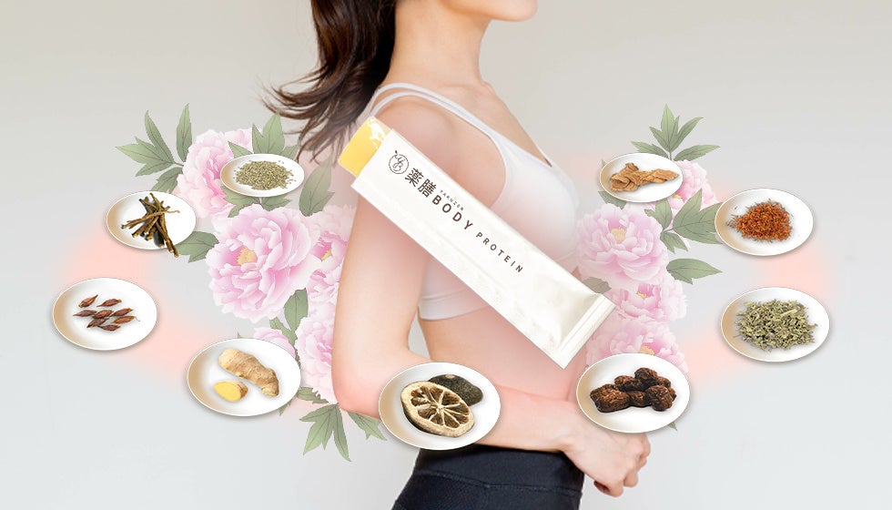薬膳BODYは「体の中から美しく 健康的でしなやかなBODYへ」をコンセプトに、プロテインゼリーに薬膳料理で使われる高麗人参の他、9種類の和漢原料と4種のハーブ原料を取り入れ、贅沢に仕上げました。