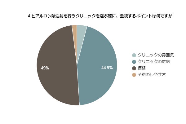 4.ヒアルロン酸注射を行うクリニックを選ぶ際に、重視するポイントは何ですか