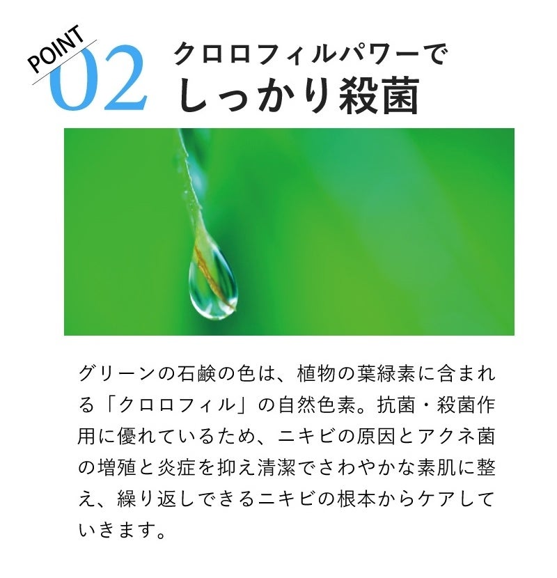 ■洗浄×殺菌、根本ケアできるクロロフィル美肌石鹸