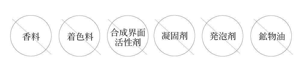 香料・着色・合成界面活性剤・凝固剤・発泡剤・鉱物油、すべて不使用
