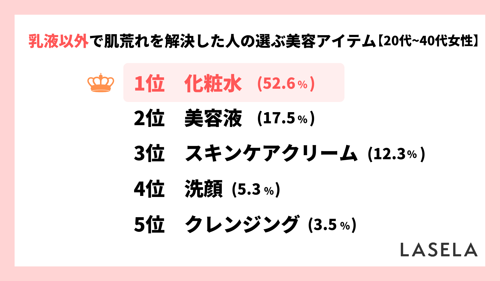 • 乳液を辞めた人の半数以上は「化粧水」で肌荒れを解決