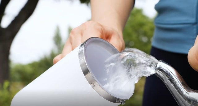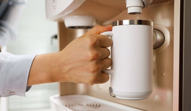 コップに水を入れて蓋をし、平らな場所に置いてボタンを押すだけ。