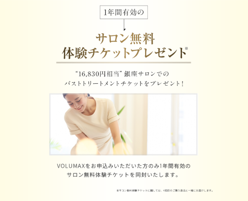 16,830円相当の老舗銀座のサロンでのバストトリートメントチケットも特典としてプレゼントいたします。