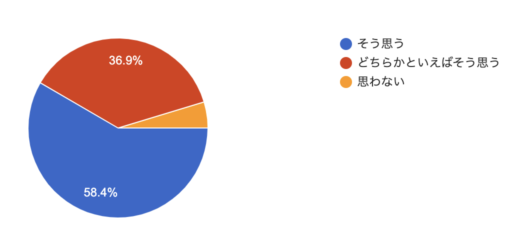 そう思うが58.4%、どちらかといえばそう思うが36.9%、思わないが4.7%。