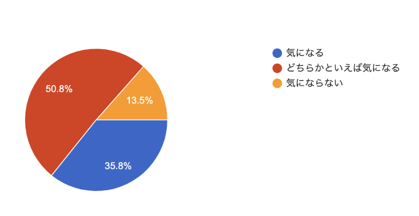 どちらかといえば気になるが最多で50.8%、気になるが35.8%、気にならないが13.5%。
