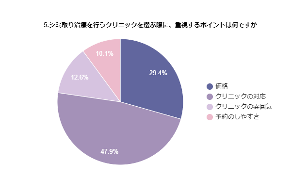 5.シミ取り治療を行うクリニックを選ぶ際に、重視するポイントは何ですか