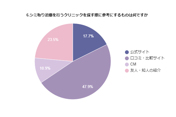 6.シミ取り治療を行うクリニックを探す際に参考にするものは何ですか