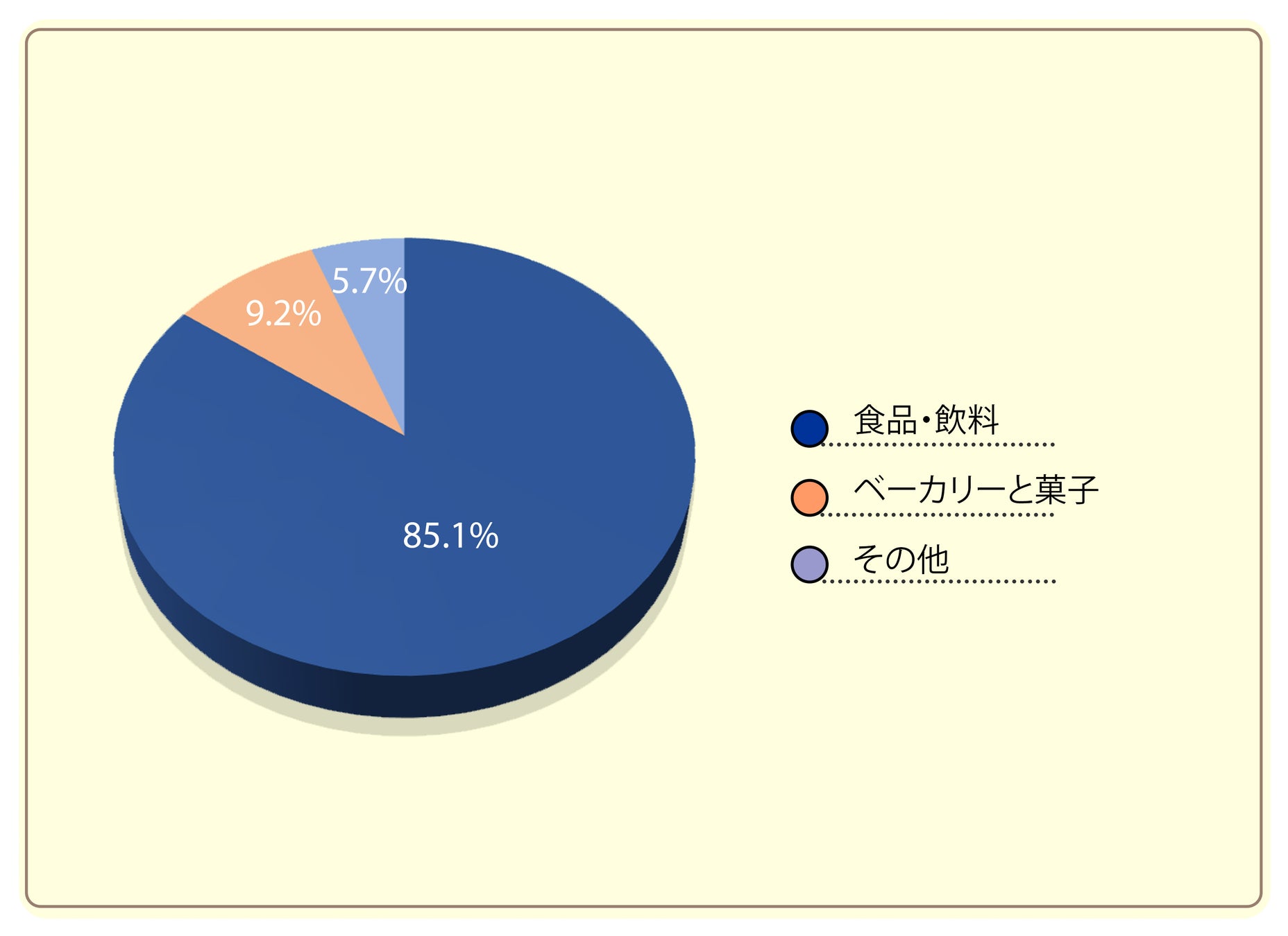 食品および飲料セグメントは、最高の市場シェアを持っています。 食品および飲料は、2021 年に約 85.1% のシェアで市場を支配しました。