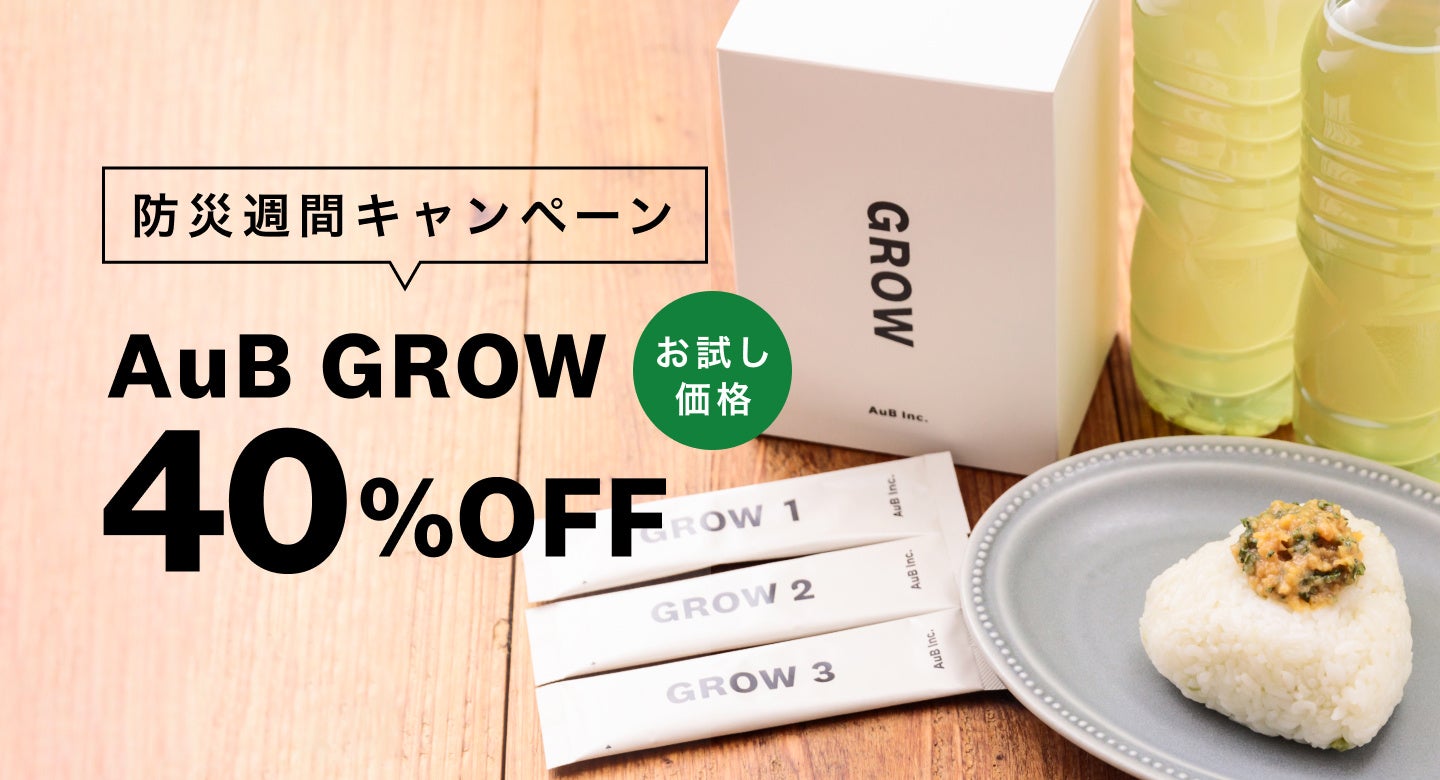 2022年8月30日(火)~9月5日(月)の防災週間に、「AuB GROW(オーブグロウ)」を通常価格から40%OFFでご購入できるクーポンをご利用いただけます。割引クーポンは先着50名様限定で利用可能です。