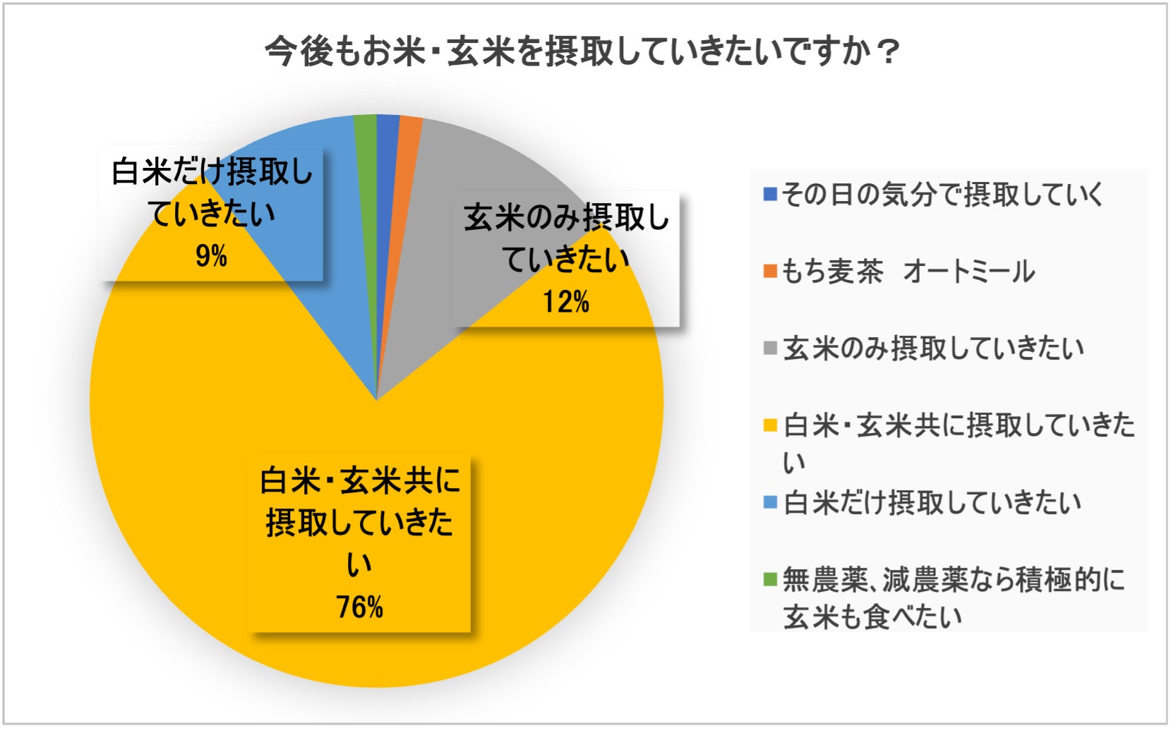 「白米・玄米共に摂取してゆきたい」と「玄米のみ摂取してゆきたい」の計が88%とかなり高い数字となっています。