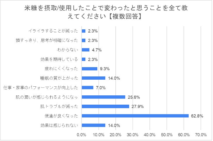 ■米糠は健康面、美容面で効果が出ていると多くの方が回答
