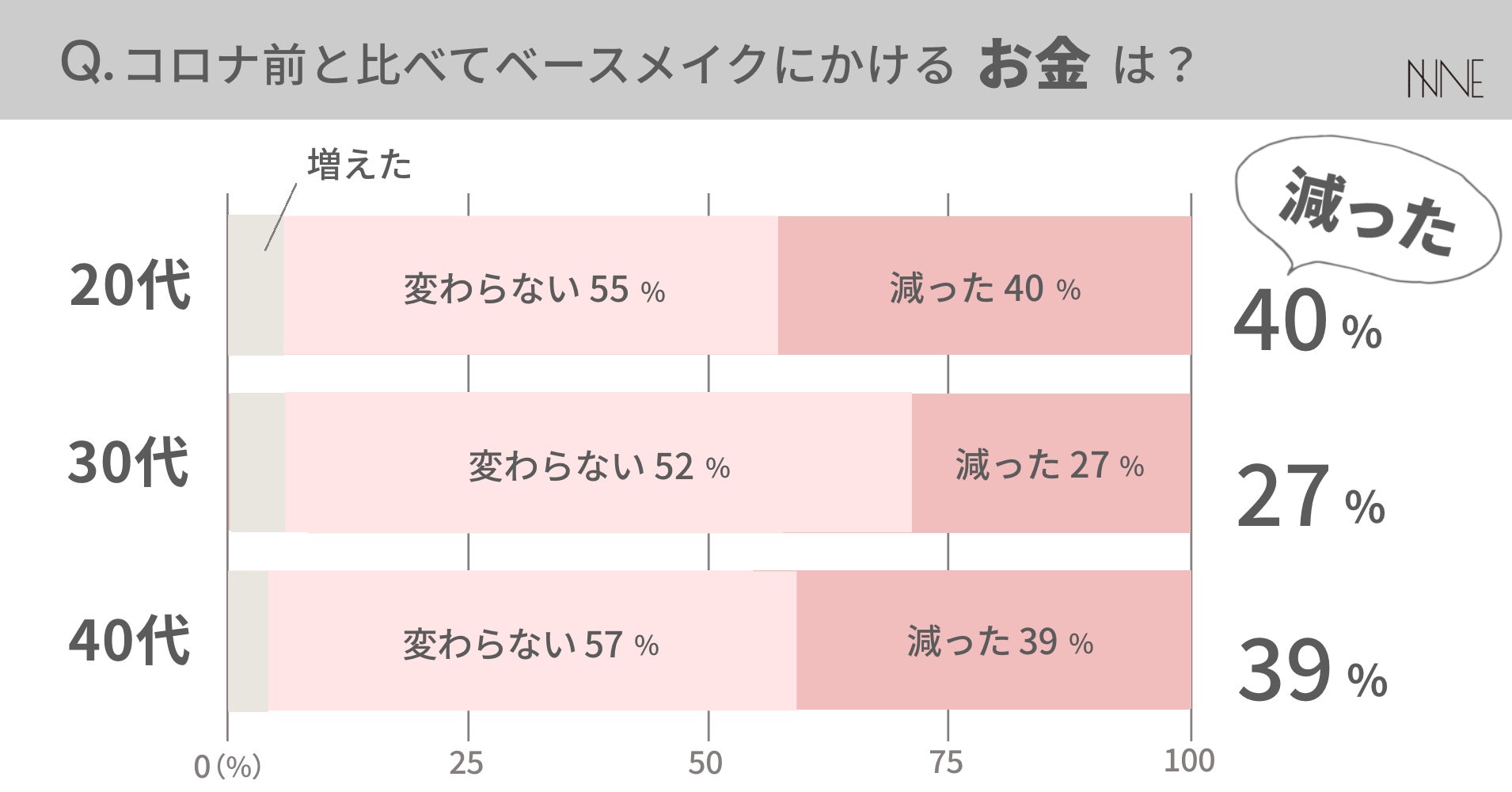 コロナ前と比べてベースメイクにかける「時間」も「お金」も、「減った」という回答が多数ありました。