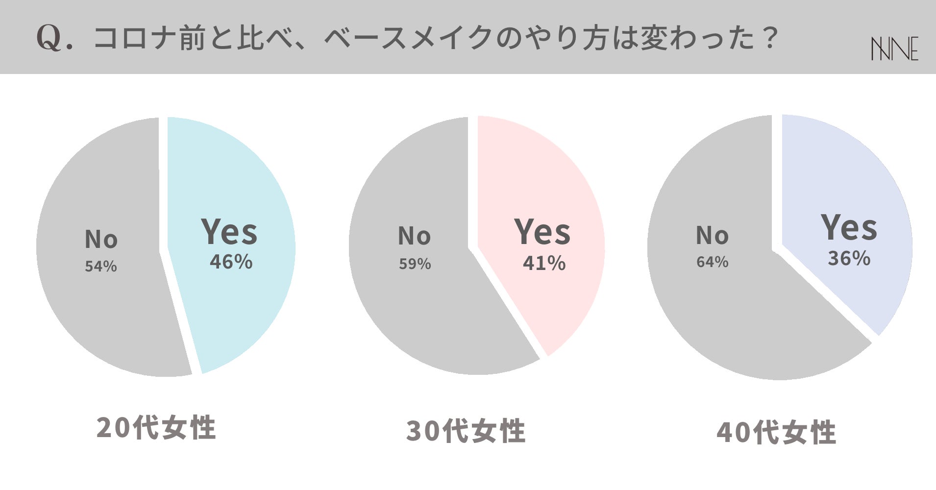 「コロナ前と比べて、今のベースメイクのやり方は変わりましたか?」という質問には、半数近くの女性が「変わった」と答えました。