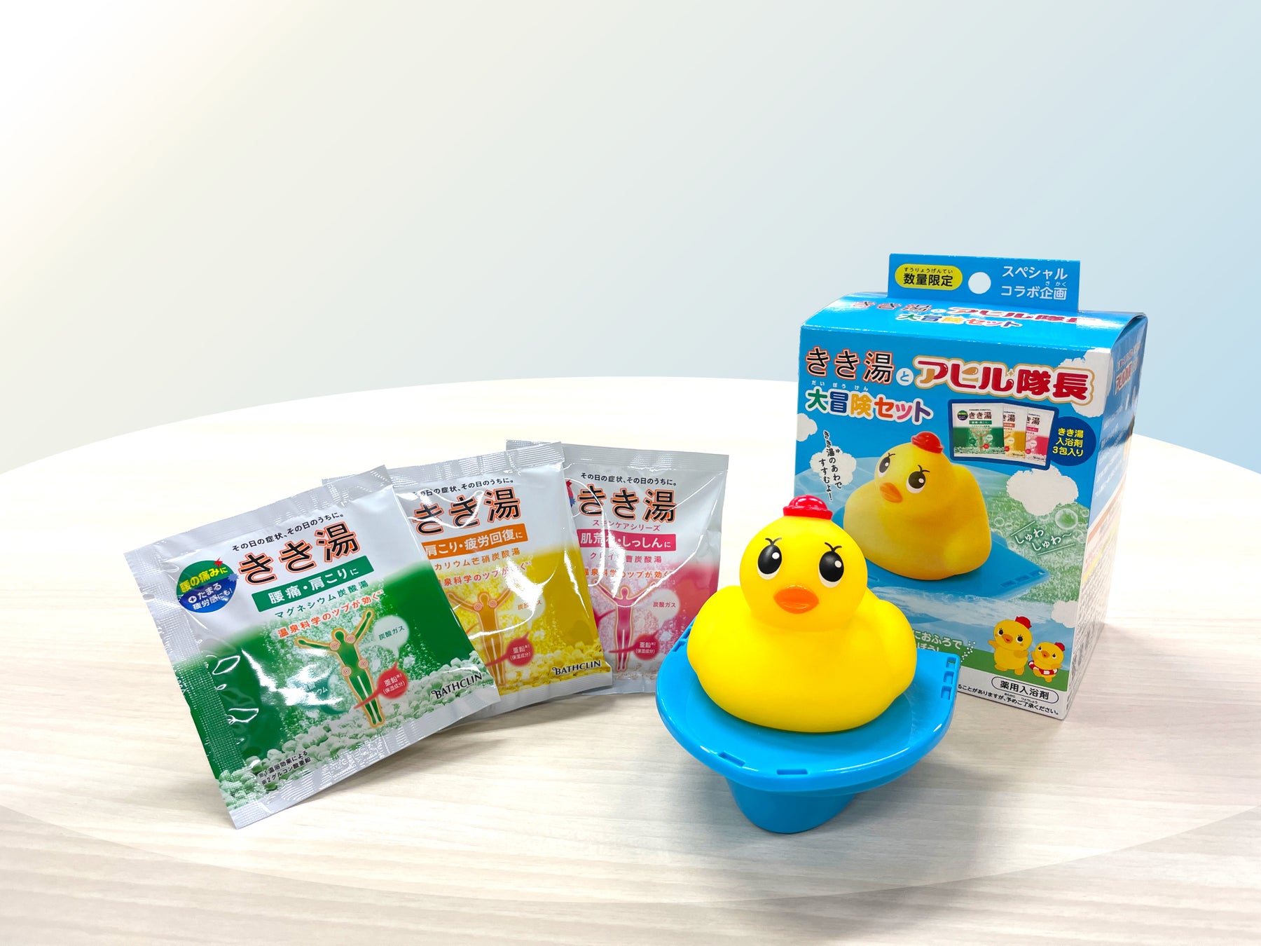 2021年11月、2022年6月に企画品として発売した「きき湯とアヒル隊長 大冒険セット」は、お子様だけでなく、大人の方にも癒しアイテムとして楽しんでいただき、SNSを筆頭に話題を集め、Twitterではトレンド入りするなど、ご好評いただいております。