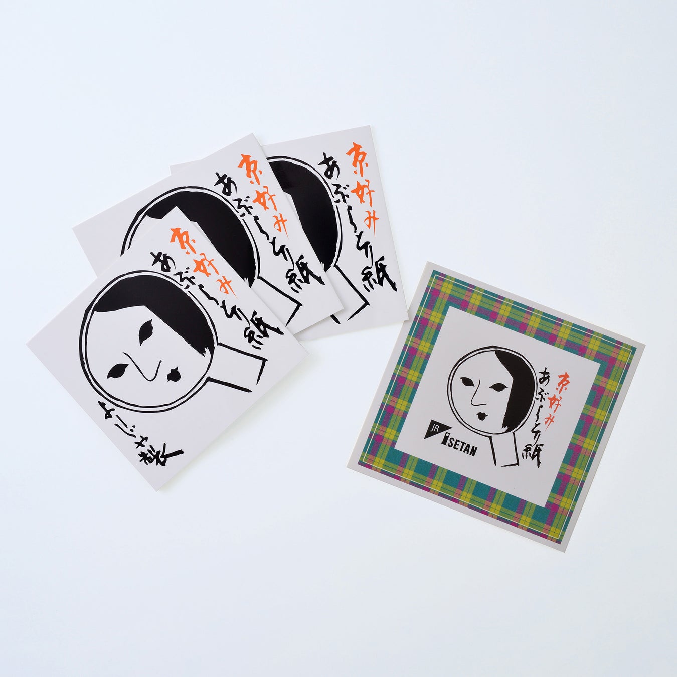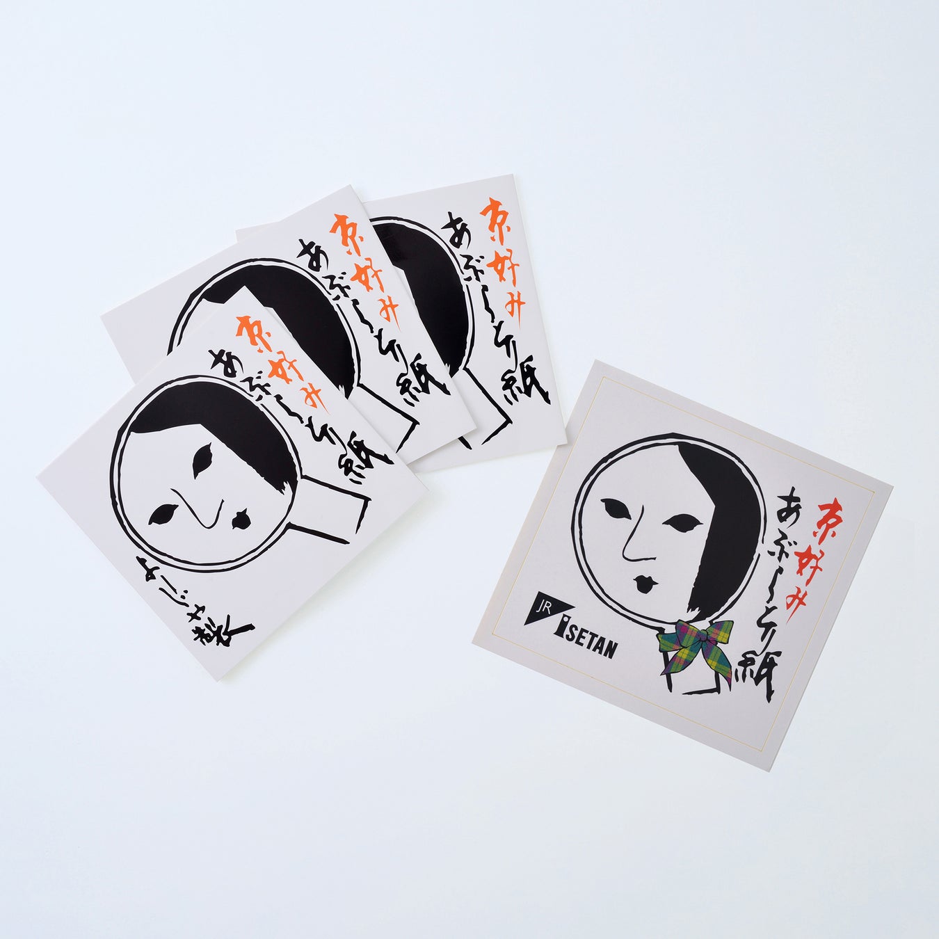 看板商品のあぶらとり紙は、3冊組に<ジェイアール京都伊勢丹>×<よーじや>限定デザインのステッカーがついたセットをご用意。