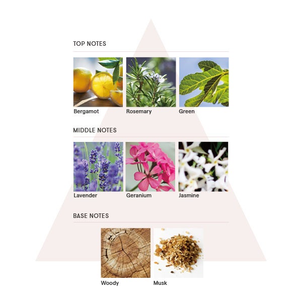 トップノートのベルガモットやローズマリーが、軽やかなフェミニンさと繊細さを引き出しながら、ウッディーやムスクの甘く強い香りのコントラストで、奥行きのある表情をつくり出します。